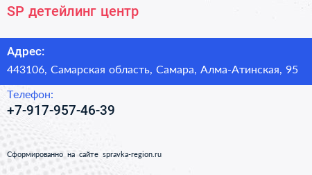 SP, детейлинг-центр по адресу 443106, Самарская область, Самара, Алма-Атинская, 95 в дальнейшем Организация, размещена в следующих категориях: