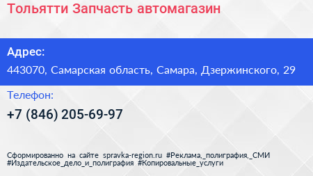 Тольятти-Запчасть, автомагазин по адресу 443070, Самарская область, Самара, Дзержинского, 29 в дальнейшем Организация, размещена в следующих категориях: