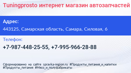 Tuningprosto, интернет-магазин автозапчастей по адресу 443125, Самарская область, Самара, Силовая, 6 в дальнейшем Организация, размещена в следующих категориях: