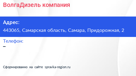 ВолгаДизель, компания по адресу 443065, Самарская область, Самара, Придорожная, 2 в дальнейшем Организация, размещена в следующих категориях: