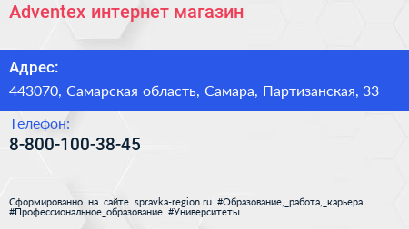Adventex, интернет-магазин по адресу 443070, Самарская область, Самара, Партизанская, 33 в дальнейшем Организация, размещена в следующих категориях: