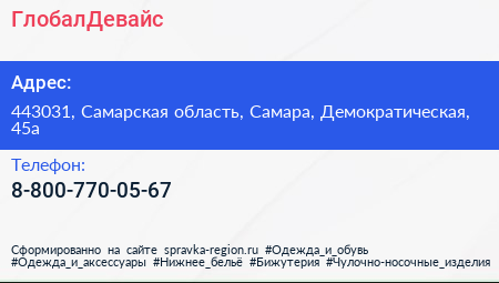 ГлобалДевайс по адресу 443031, Самарская область, Самара, Демократическая, 45а в дальнейшем Организация, размещена в следующих категориях: