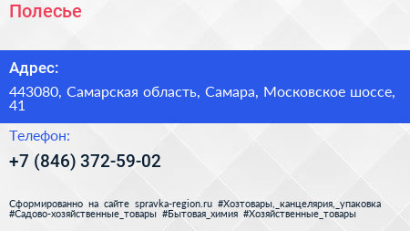 Полесье по адресу 443080, Самарская область, Самара, Московское шоссе, 41 в дальнейшем Организация, размещена в следующих категориях: