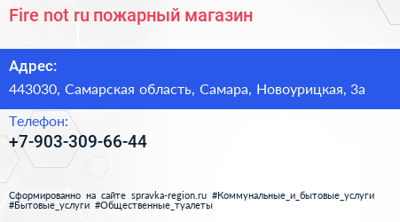 Fire-not.ru, пожарный магазин по адресу 443030, Самарская область, Самара, Новоурицкая, 3а в дальнейшем Организация, размещена в следующих категориях: