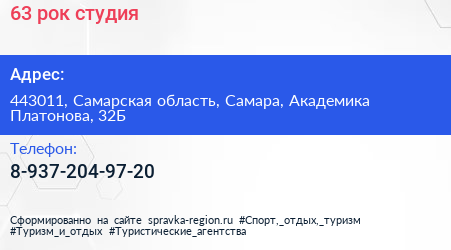 63, рок-студия по адресу 443011, Самарская область, Самара, Академика Платонова, 32Б в дальнейшем Организация, размещена в следующих категориях: