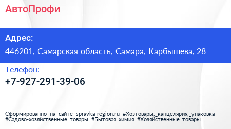 АвтоПрофи по адресу 446201, Самарская область, Самара, Карбышева, 28 в дальнейшем Организация, размещена в следующих категориях: