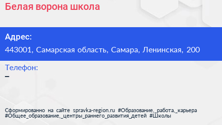 Белая ворона, школа по адресу 443001, Самарская область, Самара, Ленинская, 200 в дальнейшем Организация, размещена в следующих категориях: