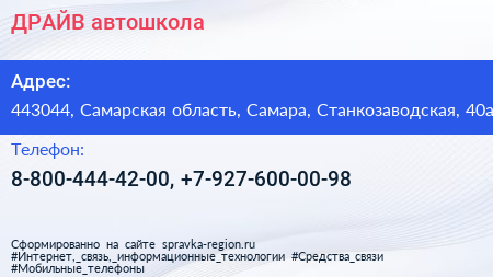 ДРАЙВ, автошкола по адресу 443044, Самарская область, Самара, Станкозаводская, 40а в дальнейшем Организация, размещена в следующих категориях:
