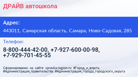 ДРАЙВ, автошкола по адресу 443011, Самарская область, Самара, Ново-Садовая, 285 в дальнейшем Организация, размещена в следующих категориях: