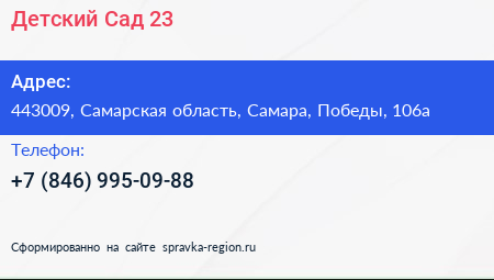Детский Сад №23 по адресу 443009, Самарская область, Самара, Победы, 106а в дальнейшем Организация, размещена в следующих категориях: