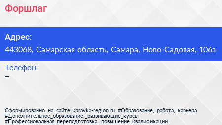 Форшлаг по адресу 443068, Самарская область, Самара, Ново-Садовая, 106з в дальнейшем Организация, размещена в следующих категориях: