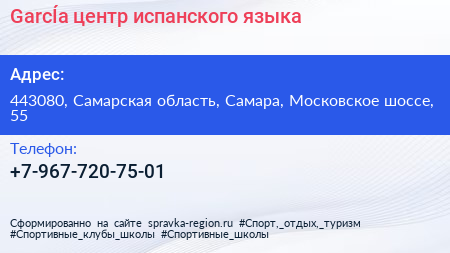 GarcÍa, центр испанского языка по адресу 443080, Самарская область, Самара, Московское шоссе, 55 в дальнейшем Организация, размещена в следующих категориях: