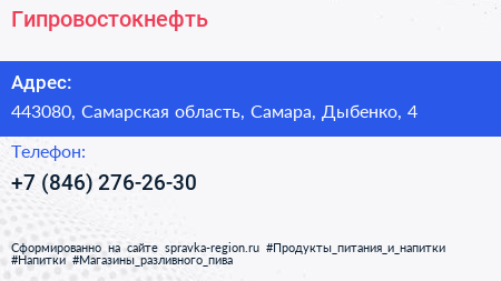 Гипровостокнефть по адресу 443080, Самарская область, Самара, Дыбенко, 4 в дальнейшем Организация, размещена в следующих категориях: