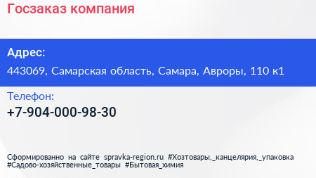 Госзаказ, компания по адресу 443069, Самарская область, Самара, Авроры, 110 к1 в дальнейшем Организация, размещена в следующих категориях: