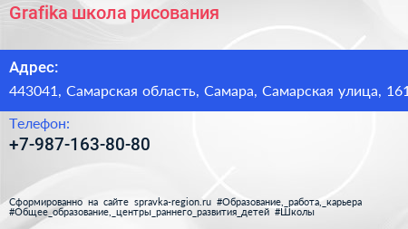 Grafika, школа рисования по адресу 443041, Самарская область, Самара, Самарская улица, 161 в дальнейшем Организация, размещена в следующих категориях:
