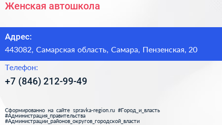 Женская автошкола по адресу 443082, Самарская область, Самара, Пензенская, 20 в дальнейшем Организация, размещена в следующих категориях: