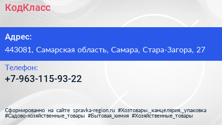 КодКласс по адресу 443081, Самарская область, Самара, Стара-Загора, 27 в дальнейшем Организация, размещена в следующих категориях:
