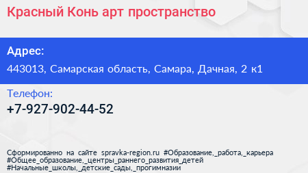 Красный Конь, арт-пространство по адресу 443013, Самарская область, Самара, Дачная, 2 к1 в дальнейшем Организация, размещена в следующих категориях:
