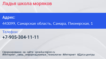 Ладья, школа моряков по адресу 443099, Самарская область, Самара, Пионерская, 1 в дальнейшем Организация, размещена в следующих категориях: