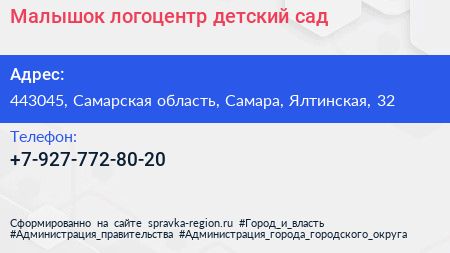 Малышок, логоцентр-детский сад по адресу 443045, Самарская область, Самара, Ялтинская, 32 в дальнейшем Организация, размещена в следующих категориях: