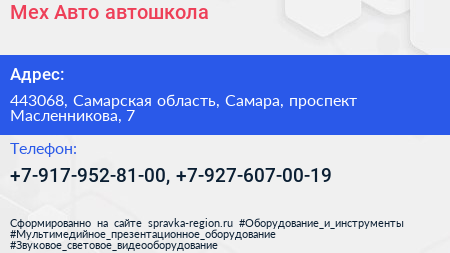 Мех-Авто, автошкола по адресу 443068, Самарская область, Самара, проспект Масленникова, 7 в дальнейшем Организация, размещена в следующих категориях: