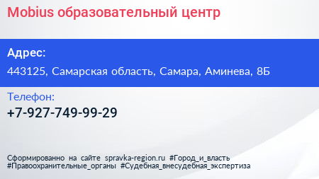 Mobius, образовательный центр по адресу 443125, Самарская область, Самара, Аминева, 8Б в дальнейшем Организация, размещена в следующих категориях: