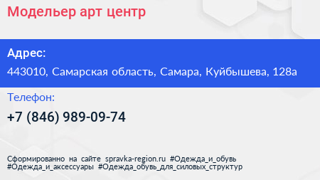 Модельер, арт-центр по адресу 443010, Самарская область, Самара, Куйбышева, 128а в дальнейшем Организация, размещена в следующих категориях: