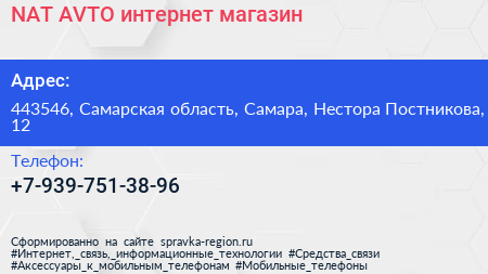 NAT-AVTO, интернет-магазин по адресу 443546, Самарская область, Самара, Нестора Постникова, 12 в дальнейшем Организация, размещена в следующих категориях:
