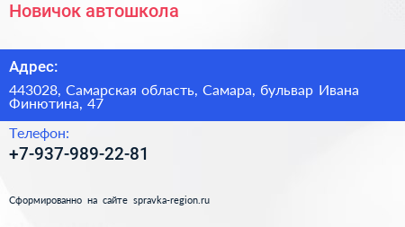 Новичок, автошкола по адресу 443028, Самарская область, Самара, бульвар Ивана Финютина, 47 в дальнейшем Организация, размещена в следующих категориях: