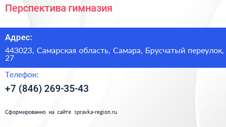 Перспектива, гимназия по адресу 443023, Самарская область, Самара, Брусчатый переулок, 27 в дальнейшем Организация, размещена в следующих категориях: