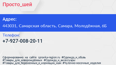 Просто_шей по адресу 443031, Самарская область, Самара, Молодёжная, 6Б в дальнейшем Организация, размещена в следующих категориях: