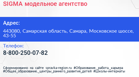 SIGMA, модельное агентство по адресу 443080, Самарская область, Самара, Московское шоссе, 43-55 в дальнейшем Организация, размещена в следующих категориях: