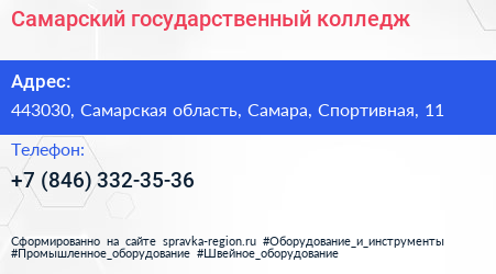 Самарский государственный колледж по адресу 443030, Самарская область, Самара, Спортивная, 11 в дальнейшем Организация, размещена в следующих категориях: