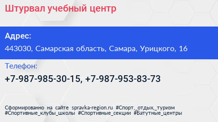 Штурвал, учебный центр по адресу 443030, Самарская область, Самара, Урицкого, 16 в дальнейшем Организация, размещена в следующих категориях: