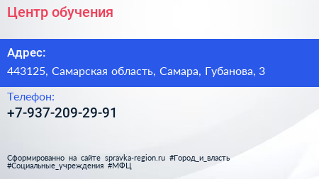 Центр обучения по адресу 443125, Самарская область, Самара, Губанова, 3 в дальнейшем Организация, размещена в следующих категориях: