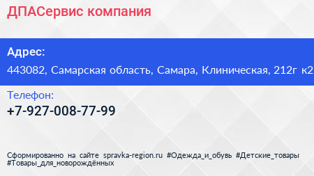 ДПАСервис, компания по адресу 443082, Самарская область, Самара, Клиническая, 212г к2 в дальнейшем Организация, размещена в следующих категориях:
