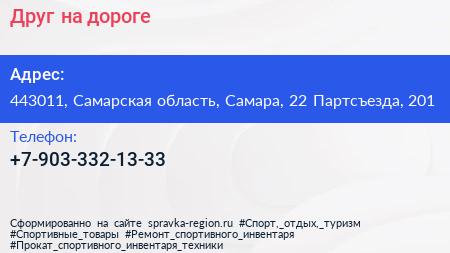 Друг на дороге по адресу 443011, Самарская область, Самара, 22 Партсъезда, 201 в дальнейшем Организация, размещена в следующих категориях: