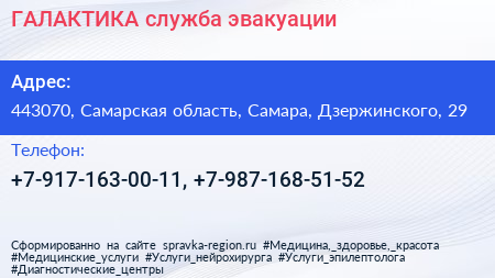 ГАЛАКТИКА, служба эвакуации по адресу 443070, Самарская область, Самара, Дзержинского, 29 в дальнейшем Организация, размещена в следующих категориях:
