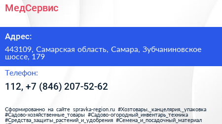 МедСервис по адресу 443109, Самарская область, Самара, Зубчаниновское шоссе, 179 в дальнейшем Организация, размещена в следующих категориях: