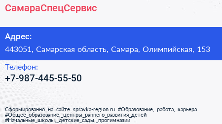 СамараСпецСервис по адресу 443051, Самарская область, Самара, Олимпийская, 153 в дальнейшем Организация, размещена в следующих категориях: