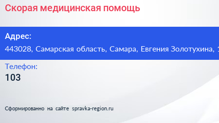 Скорая медицинская помощь по адресу 443028, Самарская область, Самара, Евгения Золотухина, 1 в дальнейшем Организация, размещена в следующих категориях: