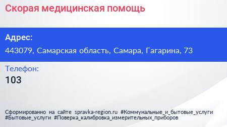 Скорая медицинская помощь по адресу 443079, Самарская область, Самара, Гагарина, 73 в дальнейшем Организация, размещена в следующих категориях: