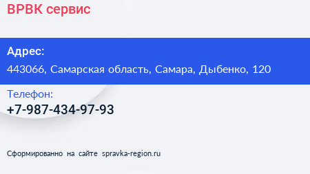 ВРВК-сервис по адресу 443066, Самарская область, Самара, Дыбенко, 120 в дальнейшем Организация, размещена в следующих категориях: