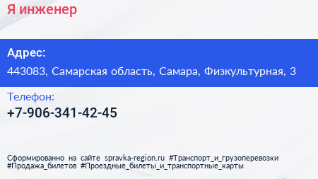 Я инженер! по адресу 443083, Самарская область, Самара, Физкультурная, 3 в дальнейшем Организация, размещена в следующих категориях: