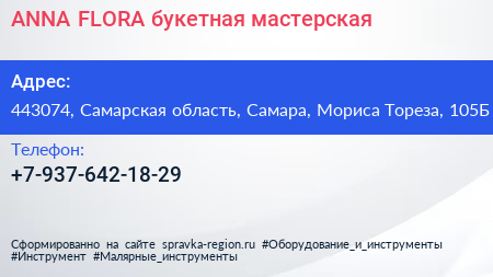 ANNA FLORA, букетная мастерская по адресу 443074, Самарская область, Самара, Мориса Тореза, 105Б в дальнейшем Организация, размещена в следующих категориях: