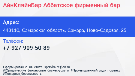 АйнКляйнБар Аббатское, фирменный бар по адресу 443110, Самарская область, Самара, Ново-Садовая, 25 в дальнейшем Организация, размещена в следующих категориях: