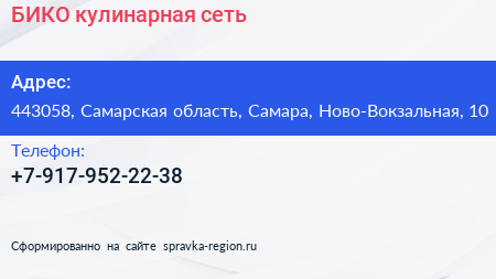 БИКО, кулинарная сеть по адресу 443058, Самарская область, Самара, Ново-Вокзальная, 10 в дальнейшем Организация, размещена в следующих категориях: