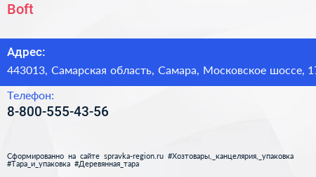Boft по адресу 443013, Самарская область, Самара, Московское шоссе, 17 в дальнейшем Организация, размещена в следующих категориях: