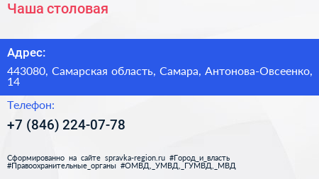 Чаша, столовая по адресу 443080, Самарская область, Самара, Антонова-Овсеенко, 14 в дальнейшем Организация, размещена в следующих категориях: