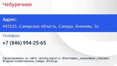 Чебуречная по адресу 443125, Самарская область, Самара, Аминева, 5а в дальнейшем Организация, размещена в следующих категориях: